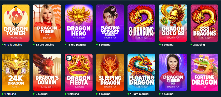 TG.Casino offers one of the largest selections of these games, including Pragmatic Play Live Dragon Tiger, Dragon Tiger by OneTouch, and other variants from Playtech, Live88, and other reputable brands.