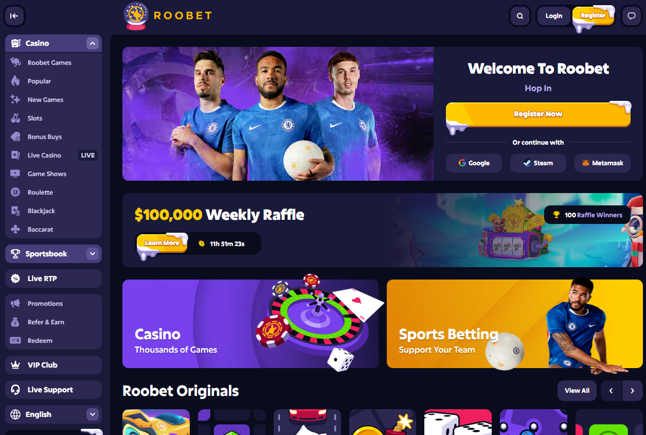 Roobet delivers a safe and immersive online casino experience across over 3,000 casino games. Many of these are popular online slots brought to you by Dragon Gaming, TrueLab, GameArt, Novomatic, and other renowned brands. Some of our favourites include Turbo Diamonds, Raging Lion, 20 Super Sevens, and Cactus Goes Nuts. The rich selection also encompasses live casino games, blackjack, roulette, and a variety of instant-win games, such as bingo and scratch cards, for those who prefer casual gambling fun.
